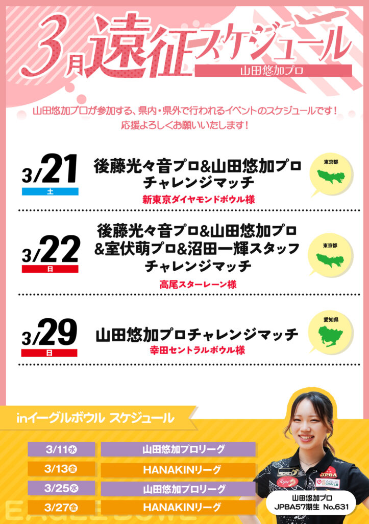 山田悠加プロの3月スケジュールを共有させていただきます。
