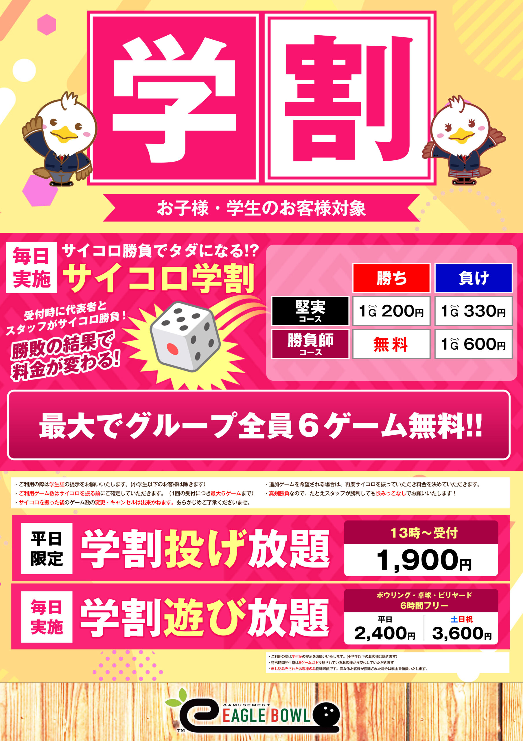 【学生さん必見!】各種学割やってます!【サイコロ・投げ放・遊び放】