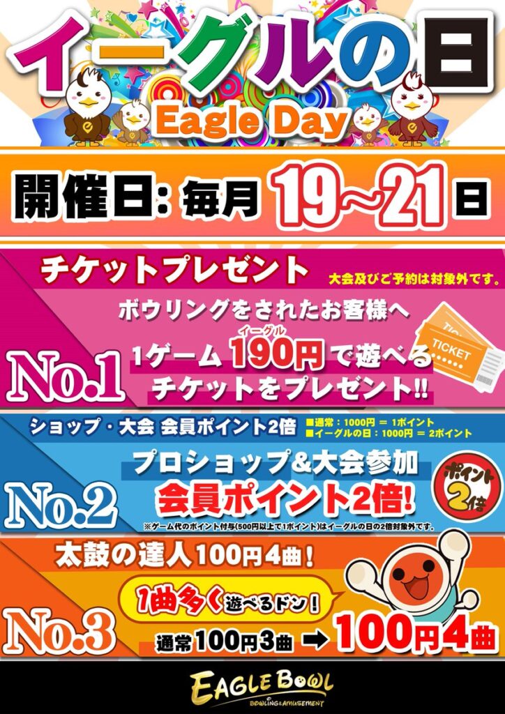 【毎月19日~21日開催!】イーグルの日