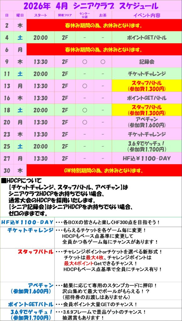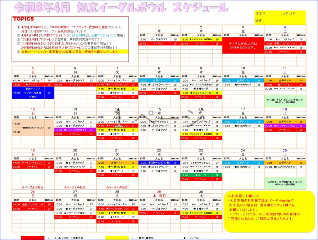 2026年4月 大会スケジュール